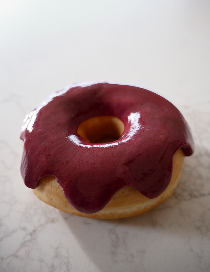Tras la cristalización, bañar con la cobertura de grosella negra.