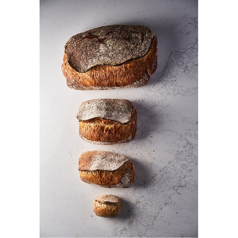 - Un assemblage unique d'un levain de blé Camp-Rémy avec de la farine de Sarrasin fermentée, tous deux torréfiés à cœur
